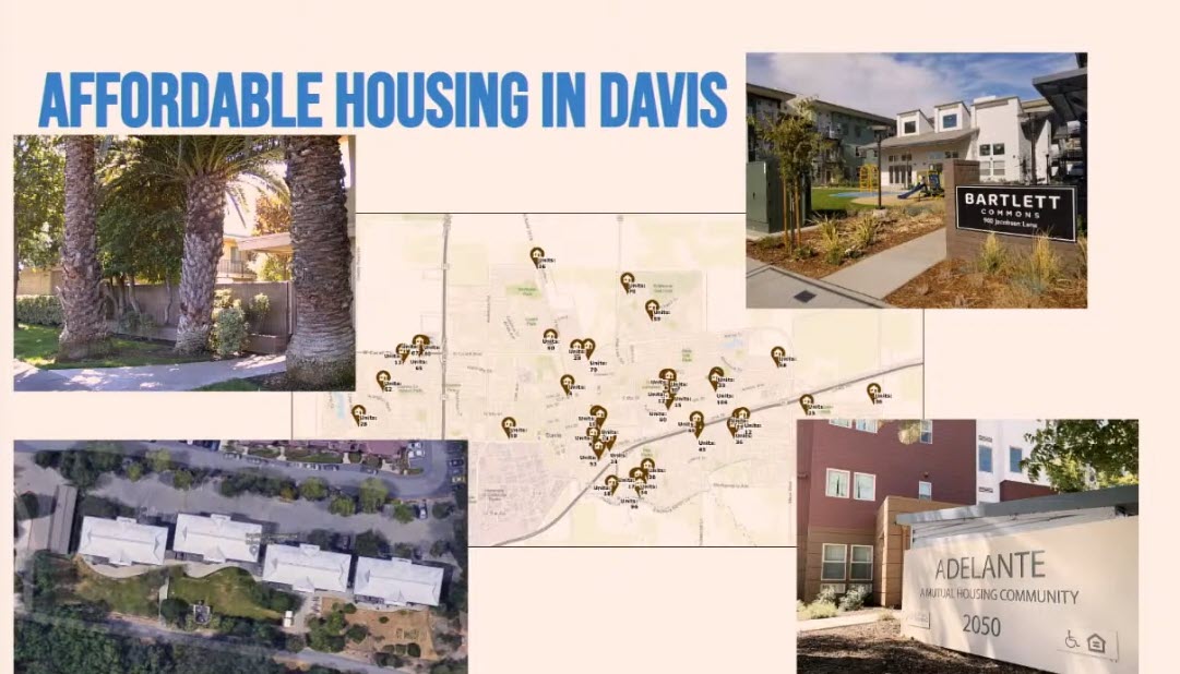 What is our priority? What are our policy objectives? Not an easy question and definitely not an easy answer. Go ahead and go to the next slide. I’ll finish up. I put this slide on here because I did just want to show that we have tried really hard in Davis to spread our affordable housing across all parts of the community. So this is slightly old map. It doesn’t have a couple of our newer projects on it, but there isn’t one part of the community that has all the affordable housing and another part that has none. We really have tried to make sure that affordable housing is integrated into the neighborhoods and is part of every portion of town. One of the things that I’ll mention that’s not specific to the Affordable Housing Fund, but is a critical part of making this happen is the city’s inclusionary housing policy. And so that means when a developer comes in with a proposal for a subdivision or some sort of residential project, that we require a portion of that project to be affordable. So right now the proportion of that or the percentage of that is 15% of the units for rental units must be affordable. Otherwise, the other options could be things like the in-lieu funds or potentially other scenarios, but because of that, affordable housing is intended to be part of each sub portion of the community not located in one particular spot.
