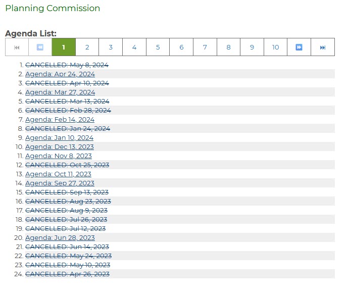 One thing I have been following is how many Planning Commission meetings have been cancelled in the last year.