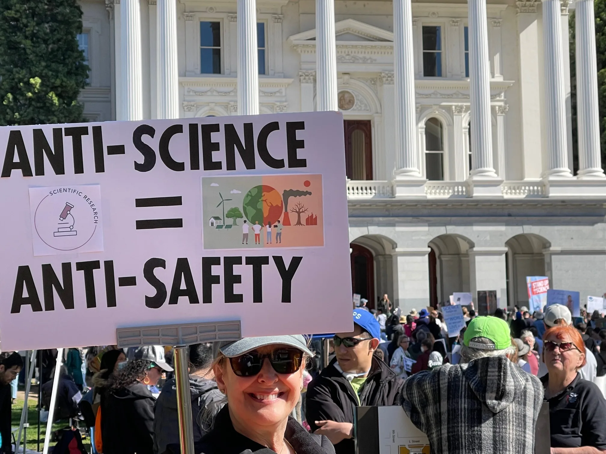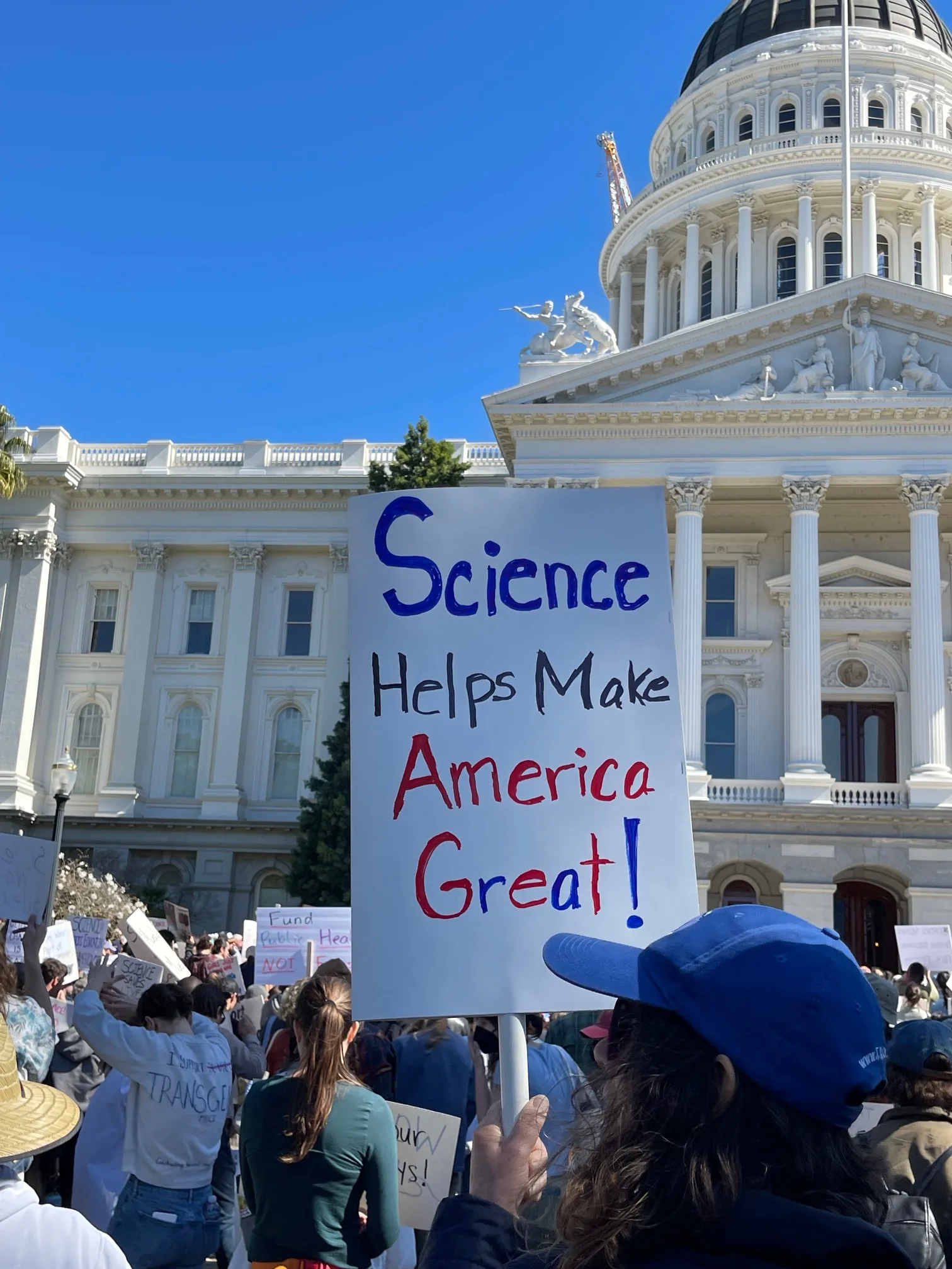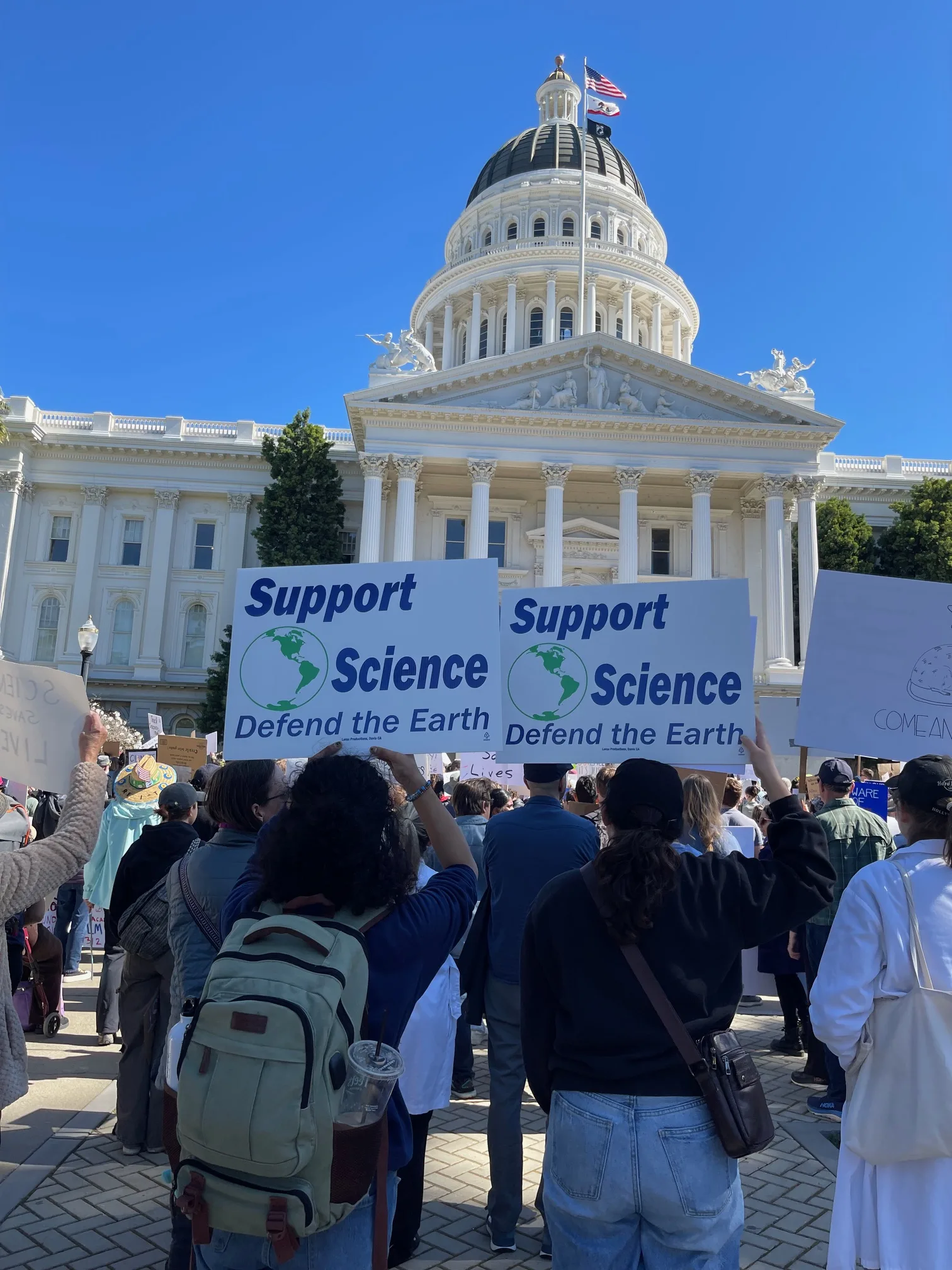 Around 1,500 people gathered at the California State Capitol on Friday, March 7, for a rally in support of science. Demonstrating their creativity, nearly a third of attendees carried homemade signs—each one a unique expression of advocacy for scientific integrity.