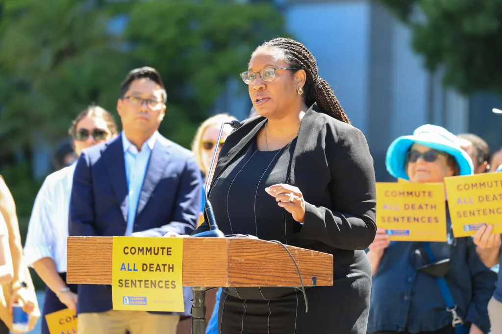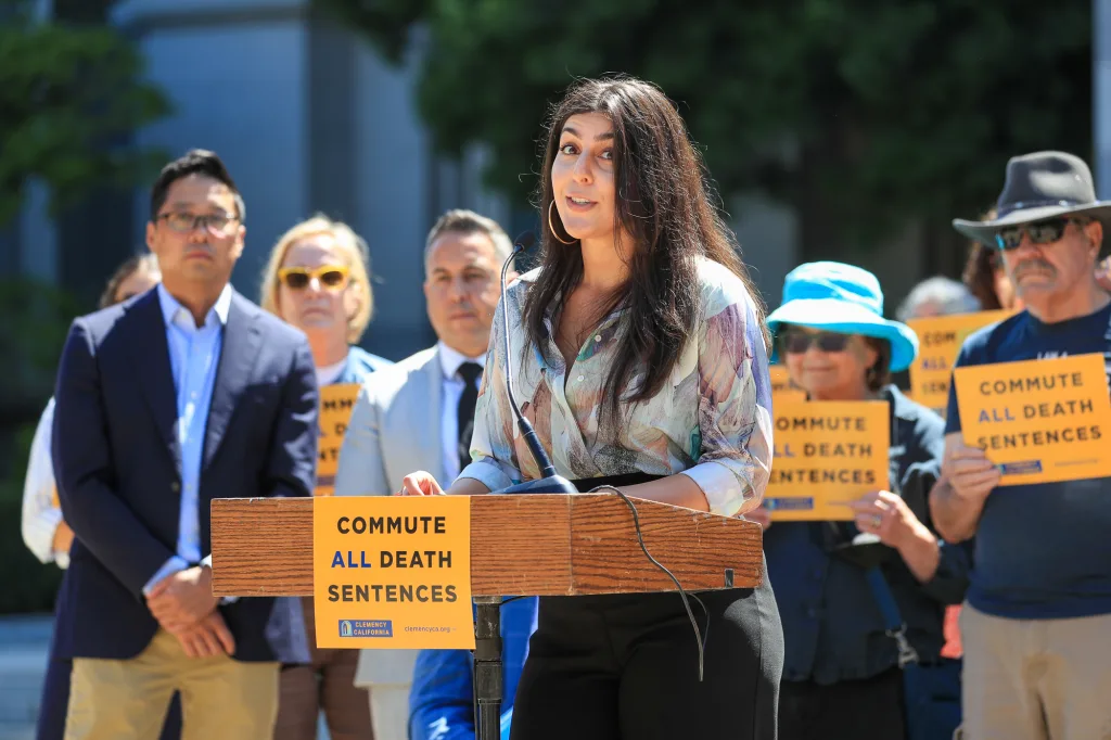 As the speakers concluded, Natasha Minsker of the California Anti-Death Penalty Coalition led the crowd in a chant that echoed through the Capitol steps: “Commute the row now. Commute the row now.”
