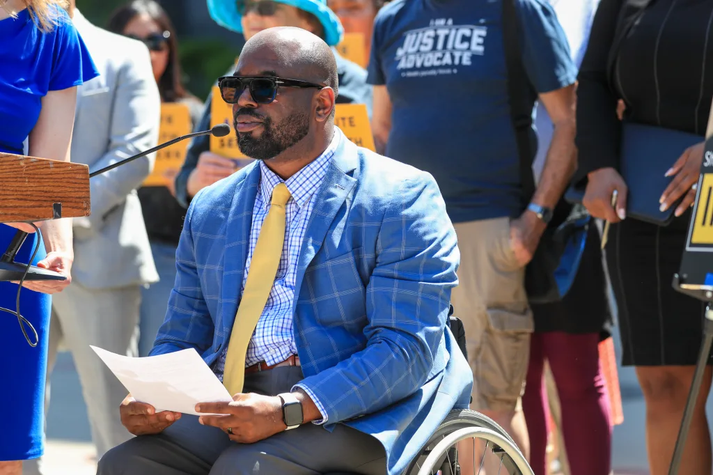 Eric Harris, associate executive director of Disability Rights California, spoke to the often-overlooked plight of disabled individuals on death row. “Disabled people — especially disabled people of color — are overrepresented on death row,” he said. “People with intellectual and developmental disabilities are more likely to falsely confess, to struggle in understanding their rights, and to face barriers in preparing their defense.”