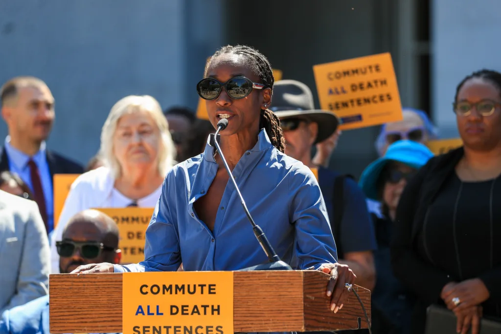 Holder emphasized the glaring disparities: Black people represent 6 percent of California’s population, but 35 percent of the death row population. “To err is human. To forgive is divine,” she said. “We can’t authentically lead this fight against authoritarianism and state violence from the apex predators in the federal government until we clean up our own house.”