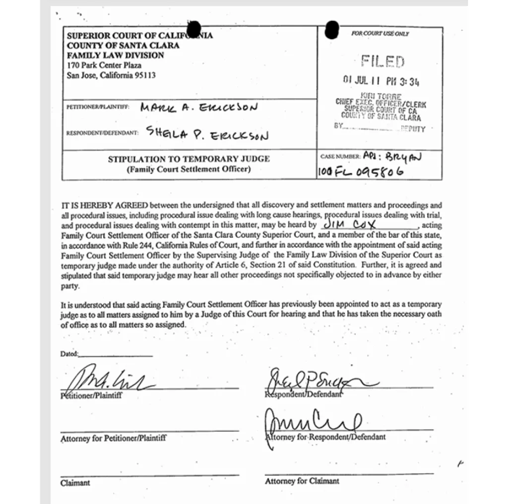 Richard claimed Erickson pressured him into hiring private judge Michael Smith, promising a faster, cheaper resolution. Instead, Richard endured nine years of litigation and private judge generated “term sheet” that stripped him of millions in separate property claims based on Erickson’s alleged negligence.