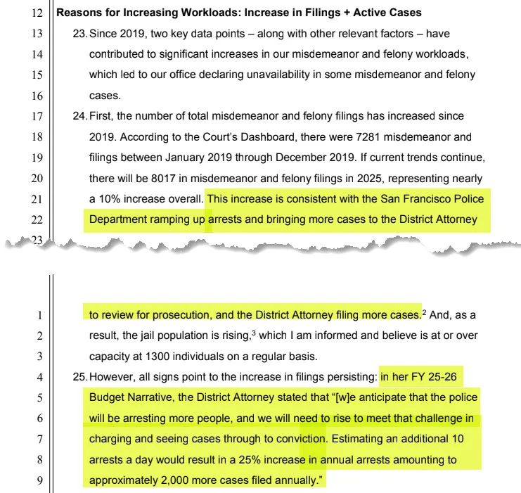 The declaration, he said, was based on data from the Judicial Council and the office’s own workload assessments, which showed rising trial volume and longer case durations due to policy and enforcement changes.