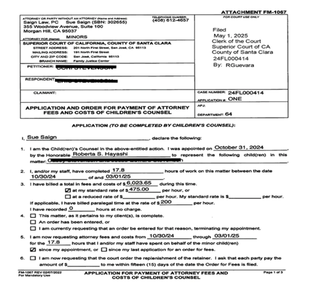 Lin sought roughly $60,000 for his fees in the case, billing at his private open rate. Several judges approved Lin’s fee requests and ordered the mother to pay Lin’s fees, at his private rate, despite her being on a court fee-waiver and responsible for supporting two young daughters. The father’s share of Lin’s fees were paid by the court, at a reduced rate.