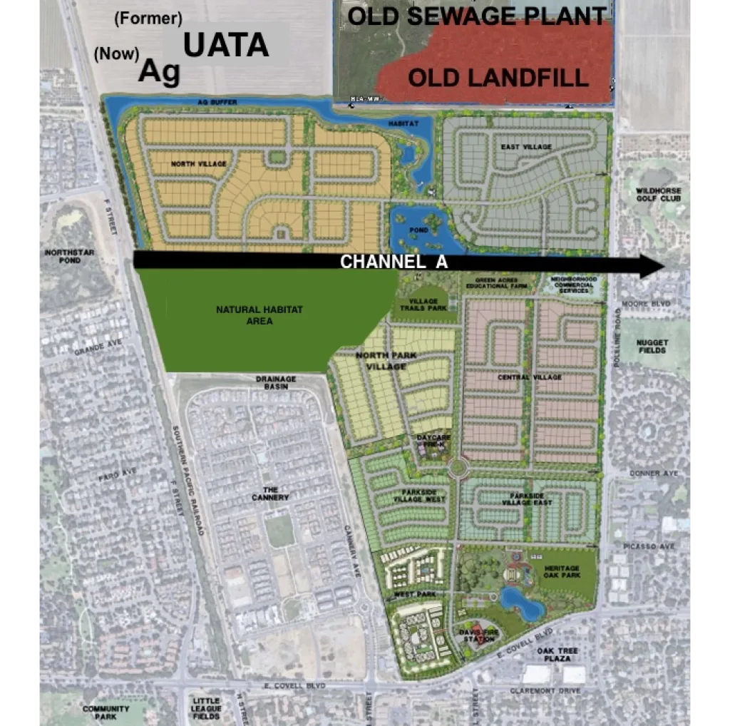 A similar version of Village Farms, Covell Village, was rejected by Davis voters 60:40 in 2005 for many of the same reasons this project and its EIR must be rejected now. The developer, John Whitcombe (Tandem Properties partner) bought the 386-acre parcel in bankruptcy due to the many obstacles making it impractical to develop (originally costing $11 million) for a mere $3.2 million. The site has long been handicapped by an enormous floodplain, unmitigable traffic, access issues, extraordinary infrastructure costs, and toxics from the adjacent unlined Old City Landfill and Sewage Treatment Plant.