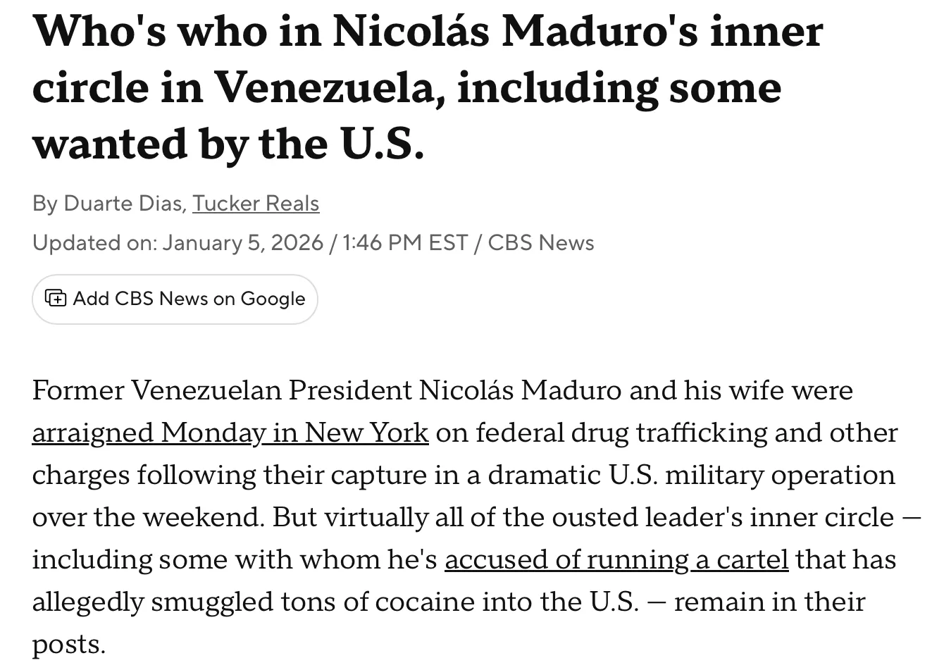 (The Guardian, Jan. 4, 2026: https://www.theguardian.com/world/2026/jan/03/why-trump-us-attacked-caracas-captured-venezuela-president-nicolas-maduro)
