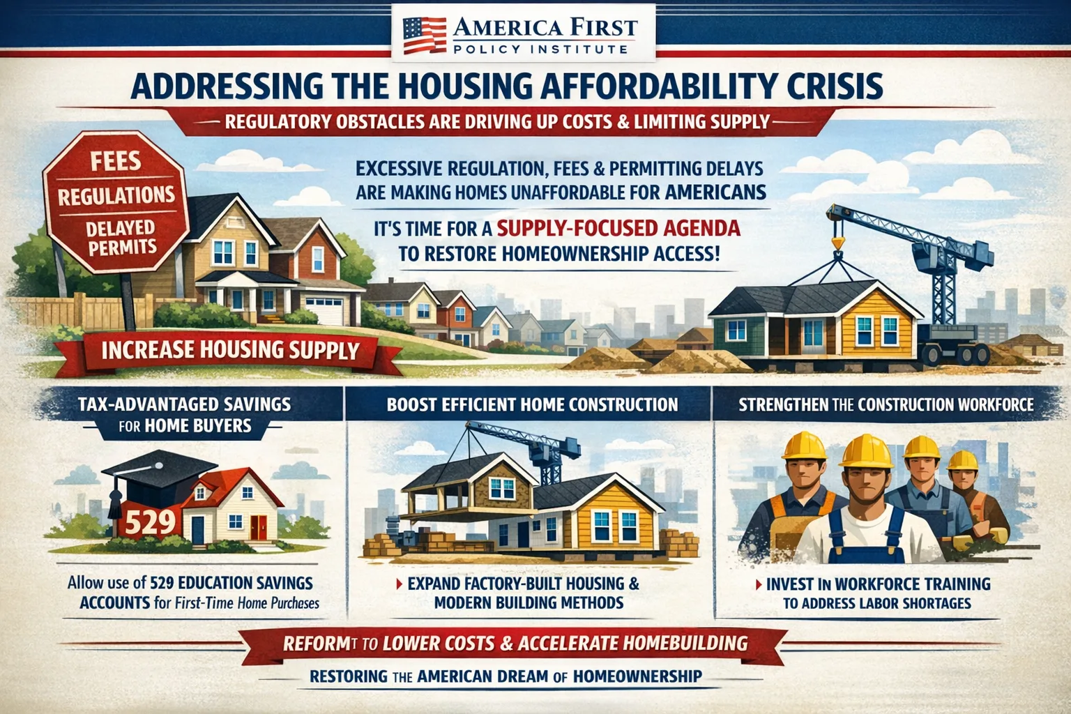 The America First Policy Institute released a housing policy brief arguing that excessive regulation, fees and permitting delays are contributing to the housing... Read more.