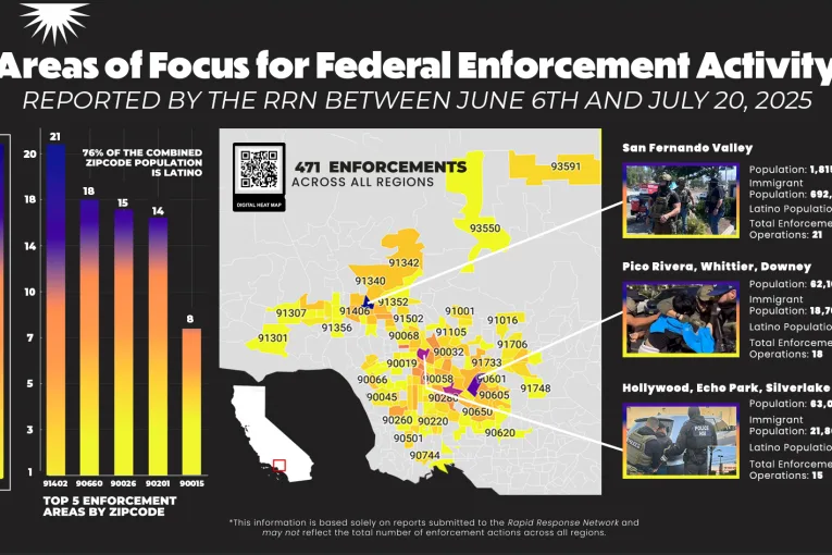 CHIRLA released an analysis showing that federal immigration enforcement actions in Los Angeles County between June 6 and July 20 were concentrated in Latino and other communities of color, suggesting a pattern of racial profiling and intimidation.