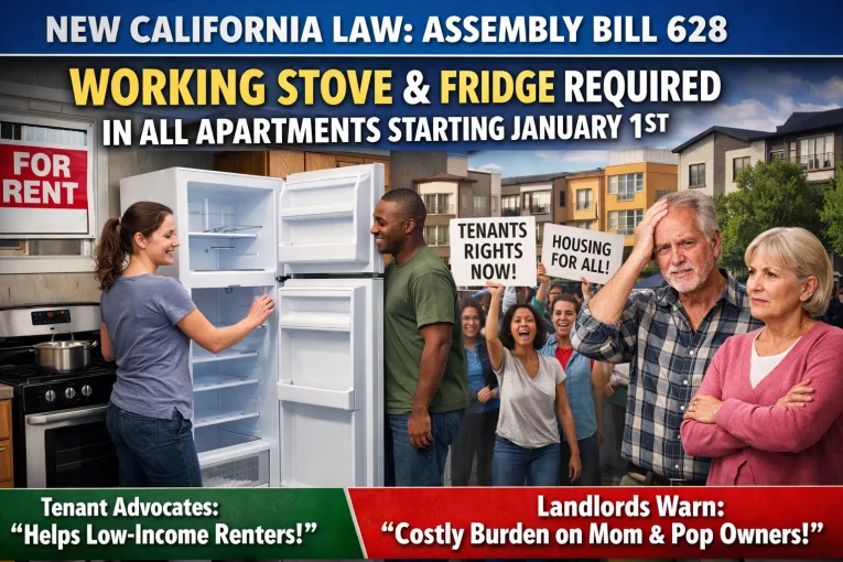 California landlords will be required to provide all apartments with a working stove and refrigerator starting January 1, 2026, ending the decades-long phenomenon of tenants having to buy their own appliances.