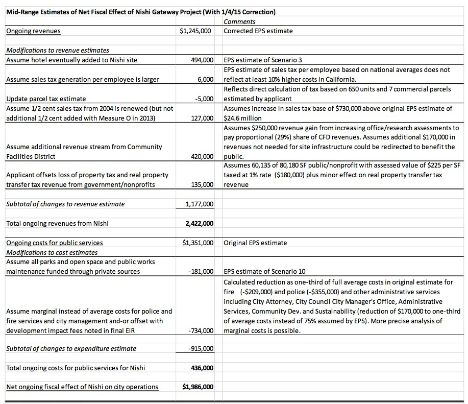 There are those who believe that Nishi does not meet the goal of a revenue generator for the city. That is a fair criticism, although Dan Carson believes that the project will generate substantial revenue. Clearly the city will be going with a more modest fiscal analysis and, based on that, the voters will have to decide if the fiscal impacts are sufficient to vote down a project that may meet a good deal of other community needs.