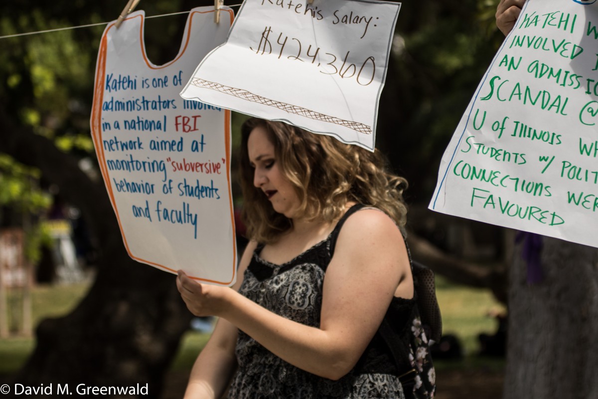 ASUCD President Alex Lee issued a statement just before 11 p.m. He said, “We received news this evening that Chancellor Katehi has been placed on investigatory administrative leave. UC President Janet Napolitano cited claims that Katehi may have violated multiple UC policies. This disturbing news comes after weeks of activity from the Fire Katehi movement and follows the alarming news that our University spent over $175,000 to improve its search engine results.”
