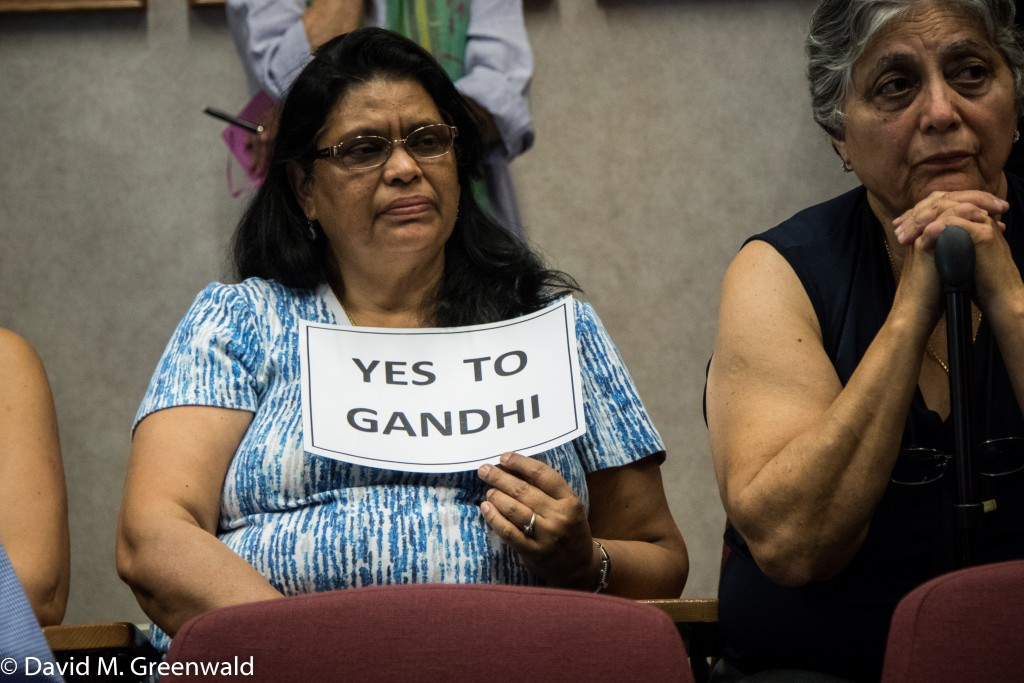 Mr. Goyal told the council that “erecting a statue of Gandhi is extremely relevant in this town in order to portray the fundamental character of this town.” He indicated that “today I am standing in front you with my heart bleeding and head down in shame. I am hurting very badly due to the actions of the mayor and mayor pro-tem.”