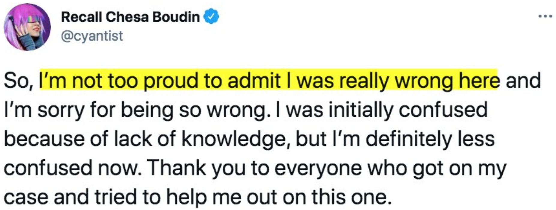 Not to mention he also openly supports Twitter user @cyantist who recently apologized for a harmful tweet last year in which they referenced white supremacist group, the Proud Boys, as only a “few bad apples”.