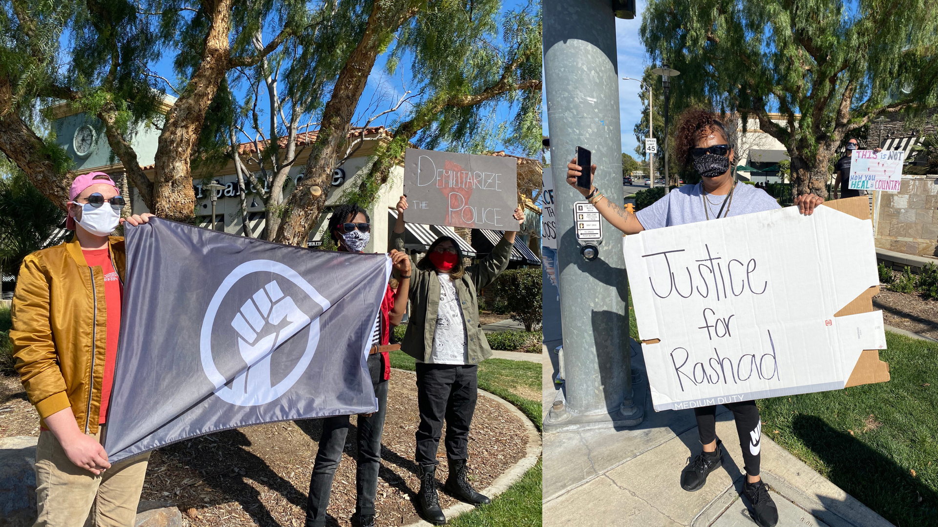 SANTA CLARITA — On Sunday, protestors gathered on the corner of McBean Parkway and Valencia Boulevard with Black Lives Matter posters and flags to demand justice for Rashad Singletary, the Black man who had been forcefully held down and punched by Los Angeles County deputies in a viral video last Tuesday.