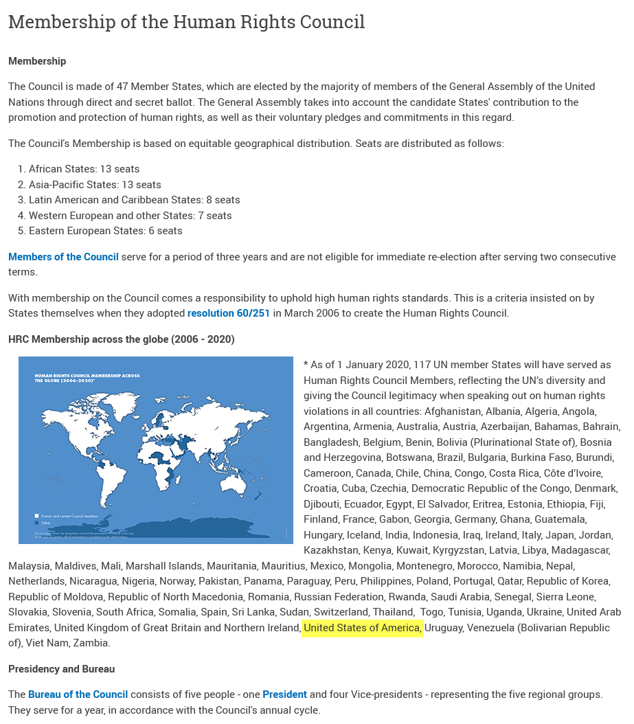 But the U.S. isn’t CURRENTLY on the UNHRC.