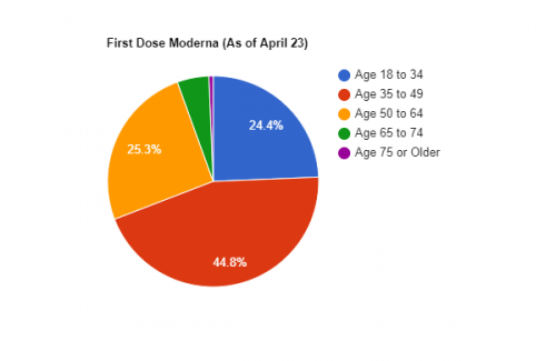 - 138 first doses and 110 second doses were given to people ages 35 to 49.