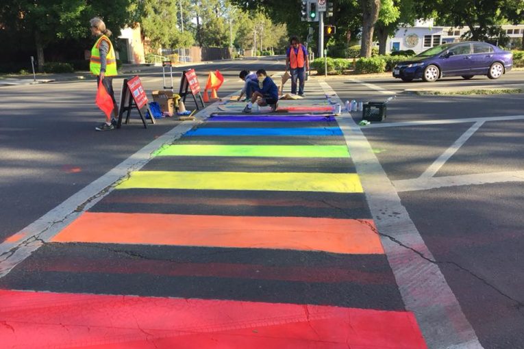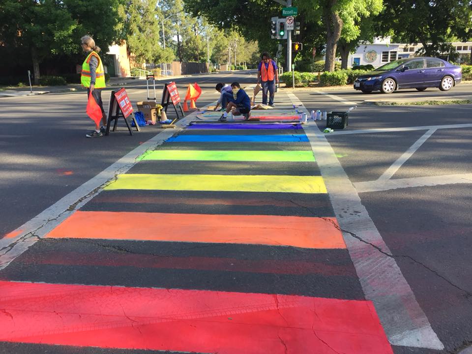 This weekend The Davis Phoenix Coalition, which puts on the City’s Pride Celebrations, produced their yearly painting of rainbow crosswalks around Central Park in preparation of June being Pride Month. The crosswalks in addition to being beautifully colorful and engaging, are a visible reminder that members of our LGBTQ+ community are supported and seen in the City of Davis. Our city has had a long history of social justice activism from a number