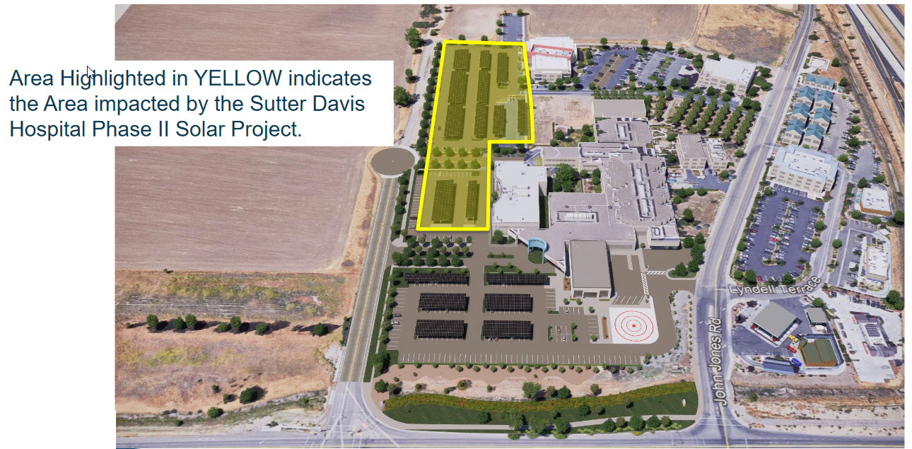 The project calls for improvements to the Sutter Davis campus, originally approved back in 2019, which includes the addition of more medical and birthing rooms but also green energy initiatives (parking lot photovoltaics).