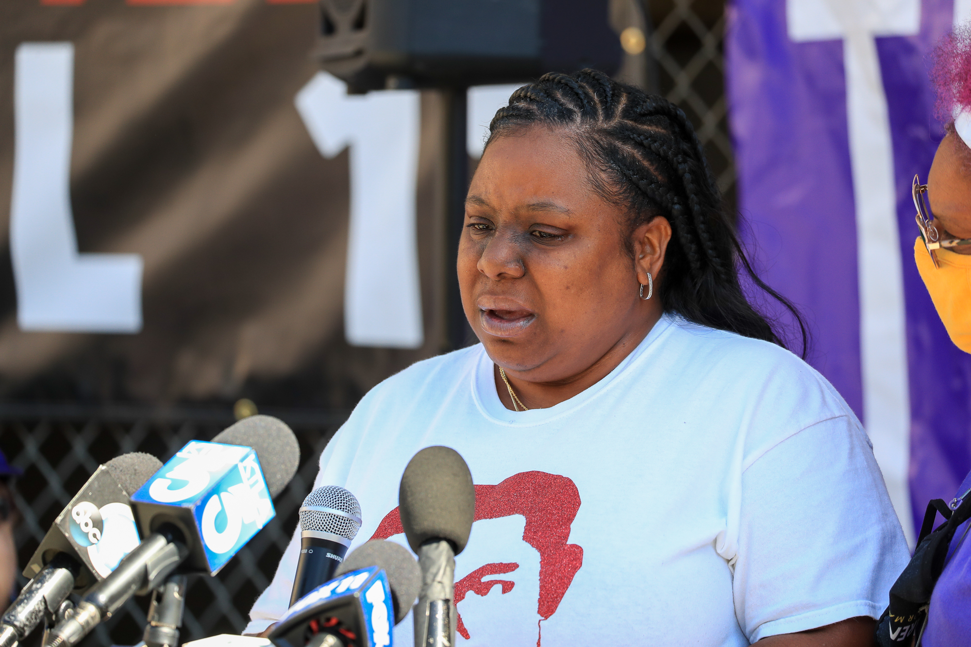On Wednesday, Chiquita Twyman, Ryan’s sister and a member of SEIU Local 2015 spoke at the Gascón rally.