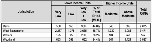Moreover, here are the actual RHNA numbers for Yolo County. Davis has always had much lower RHNA numbers than any neighboring city.