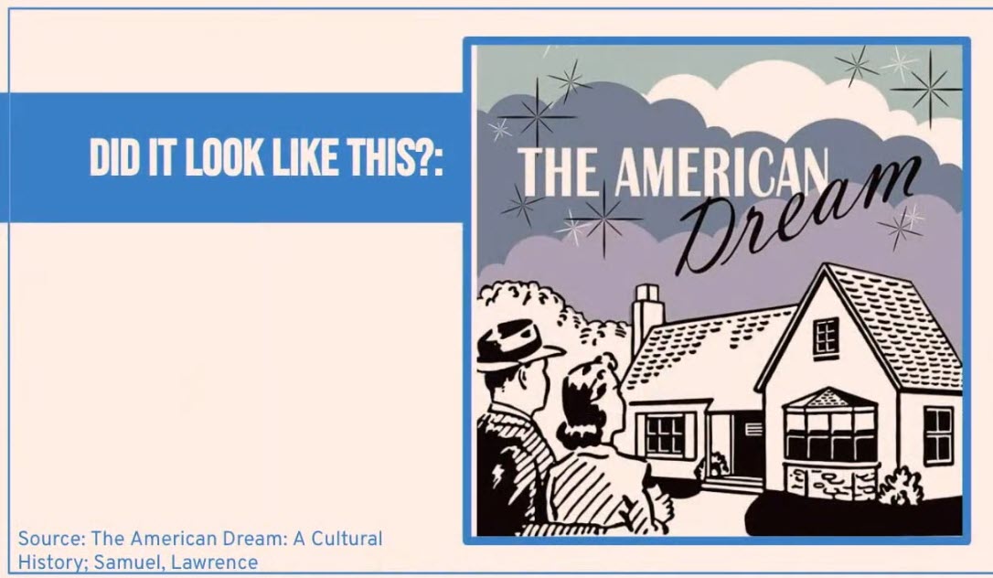 That’s an aspect of home safety beyond those two things, safety and shelter we’ve all shared. That’s a basic of the human experience, but belonging, that’s another piece of the puzzle. And I’m going to add a third. When you think about home, if you could go to the next slide, perhaps the home that you thought of looked a little like this. This is an iconic image and it’s one that is indicative of our history in the last 70 years or so of growth in suburban America. The house that I live in right now actually reflects this because much of Davis actually reflects this. I live in a single family zoned home surrounded by other single family homes with my who are watching tonight, hi boys.
